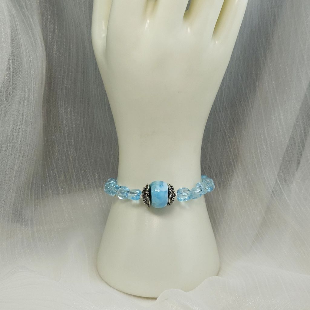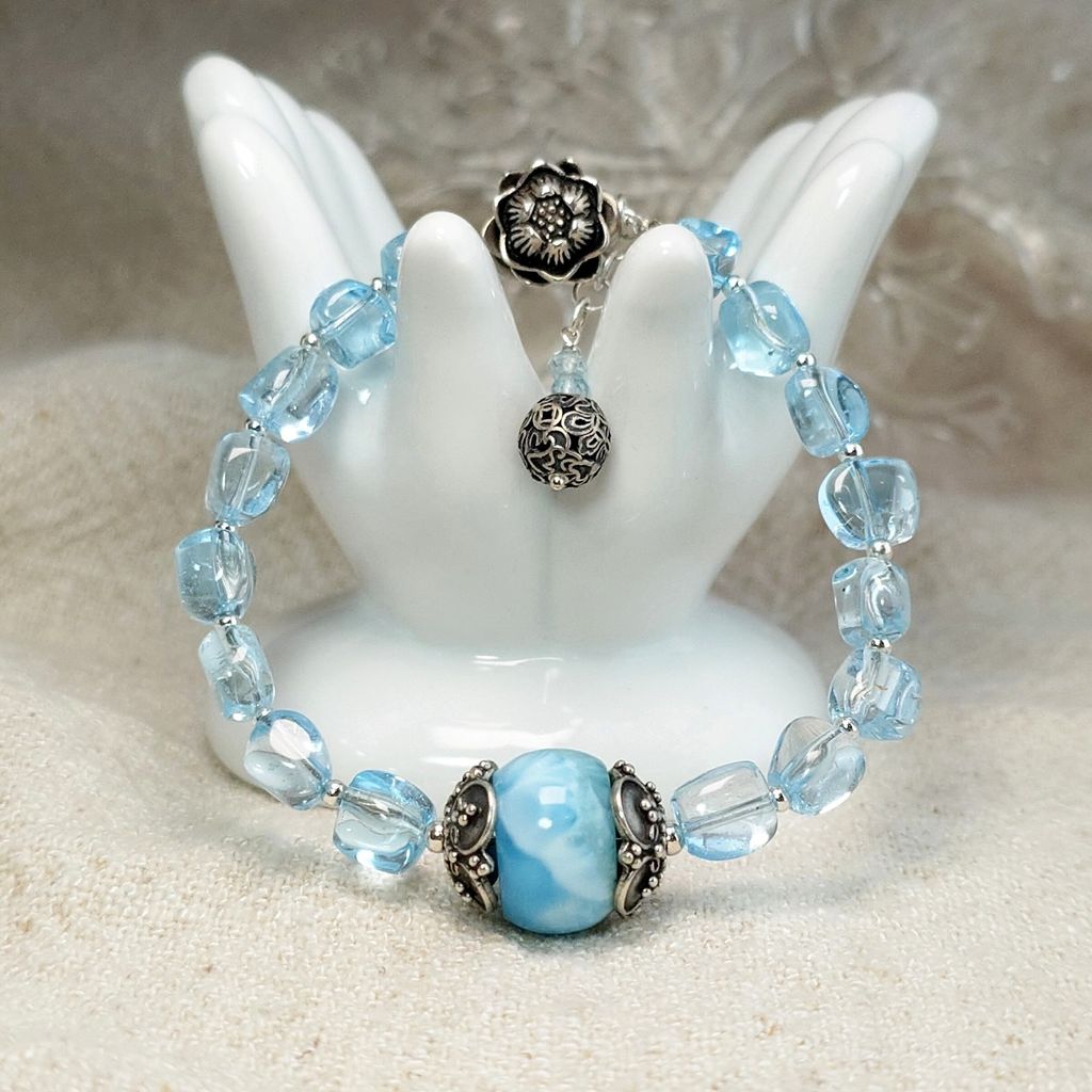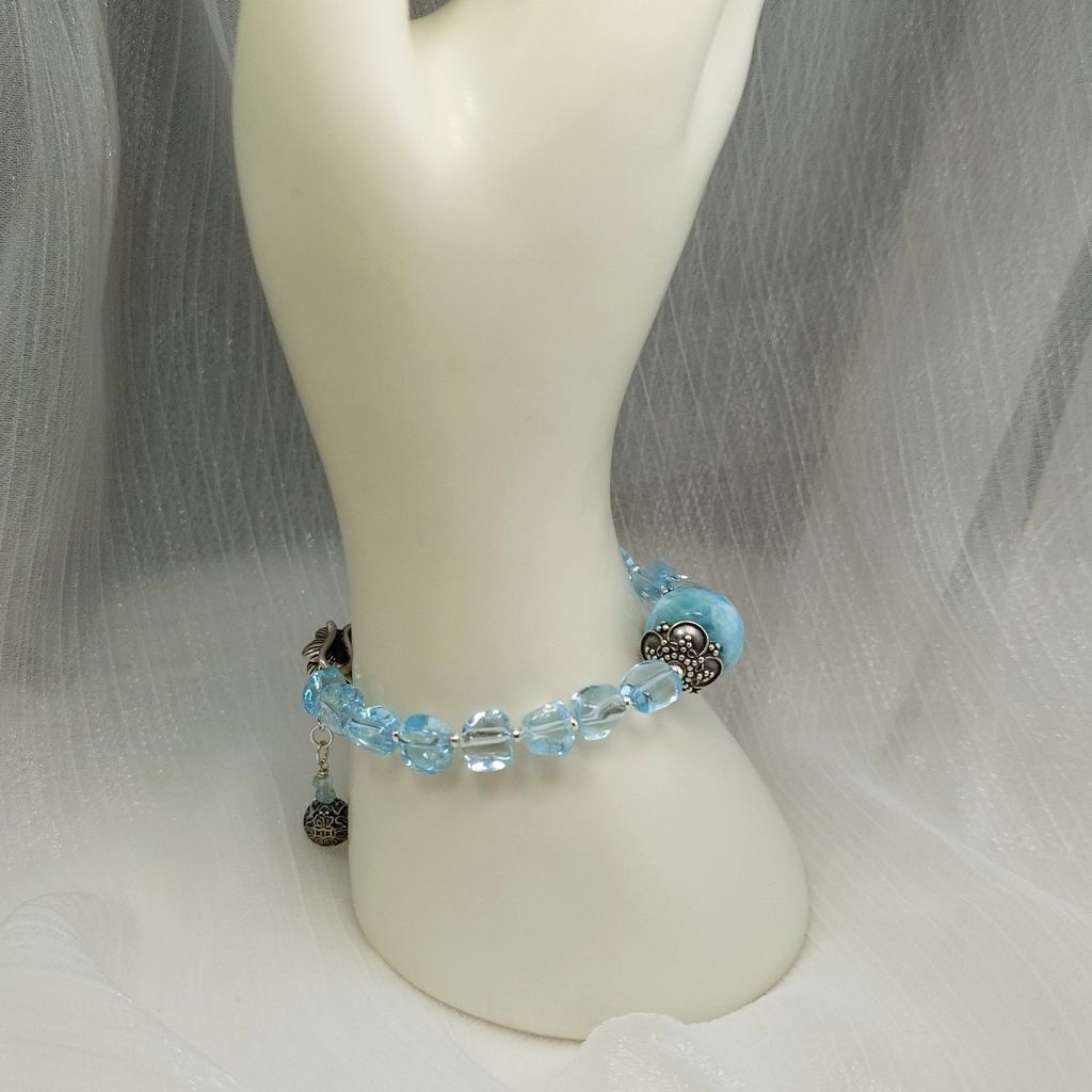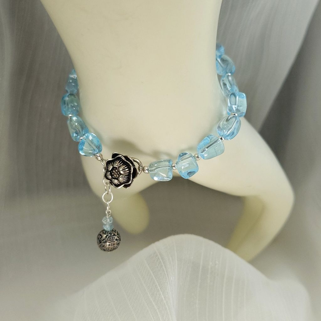 手鍊 藍 拓帕石 拉利瑪 海紋石 海藍寶 手珠 925銀飾 蓮花 寶石