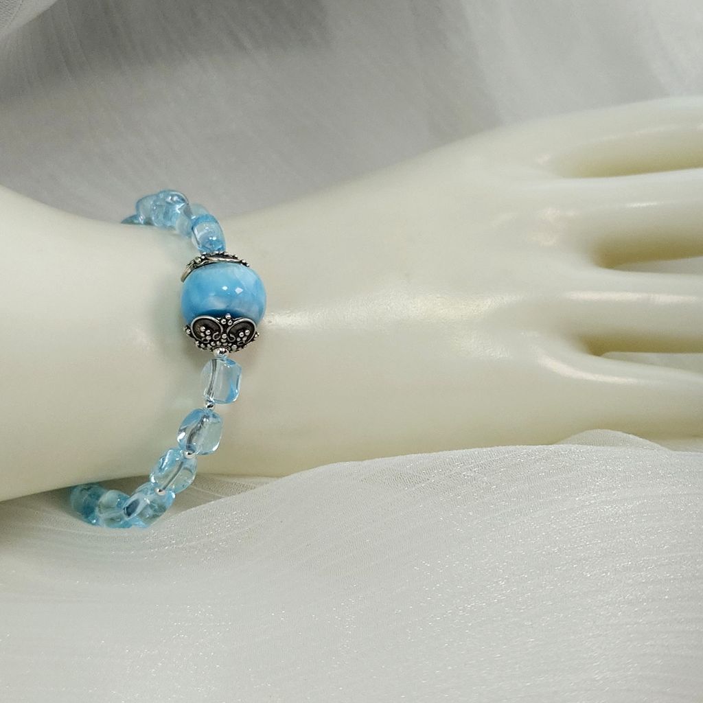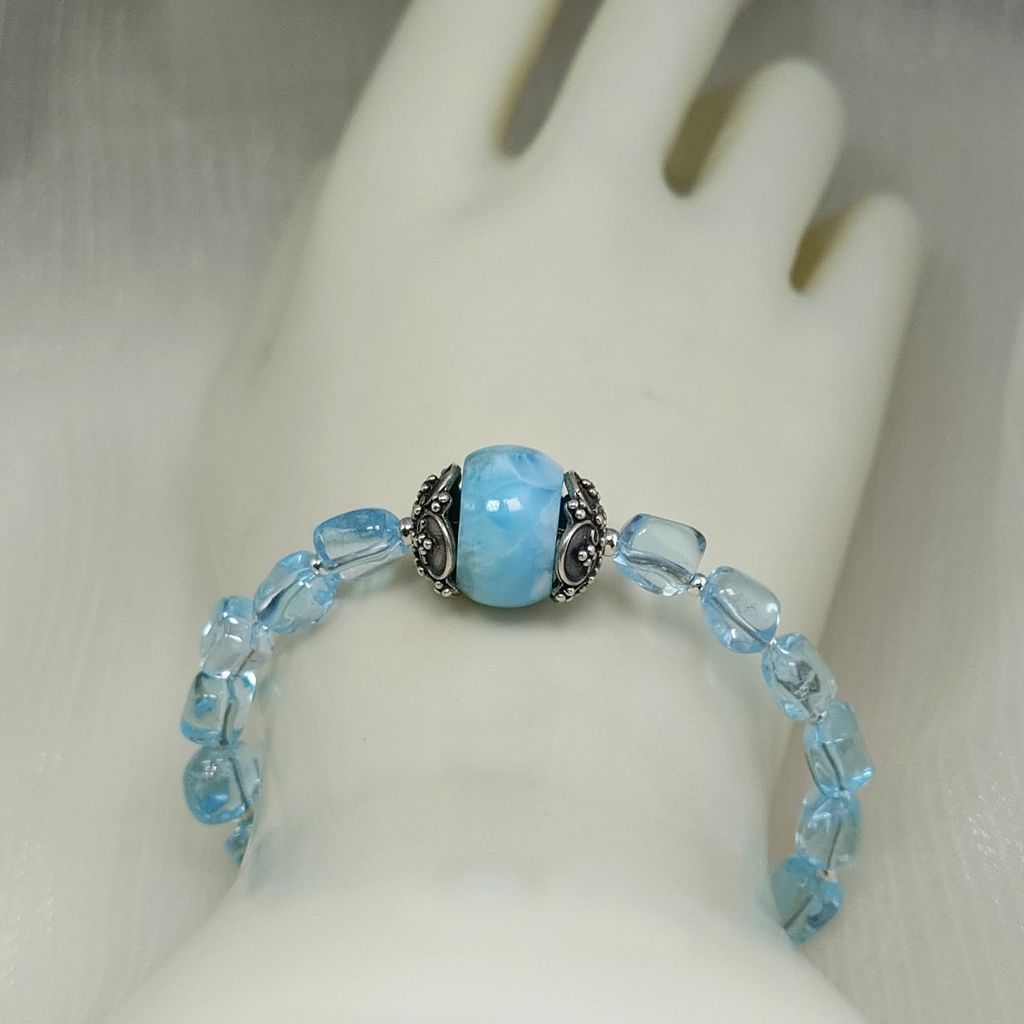 天然拉利瑪 藍拓帕石 925典雅銀飾手鍊