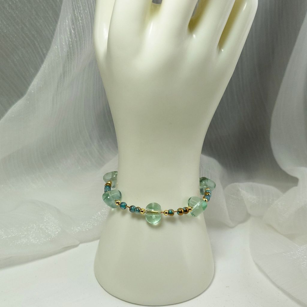 手環 天然 三角形 綠螢石 捷克琉璃珠 包金 手鍊 寶石