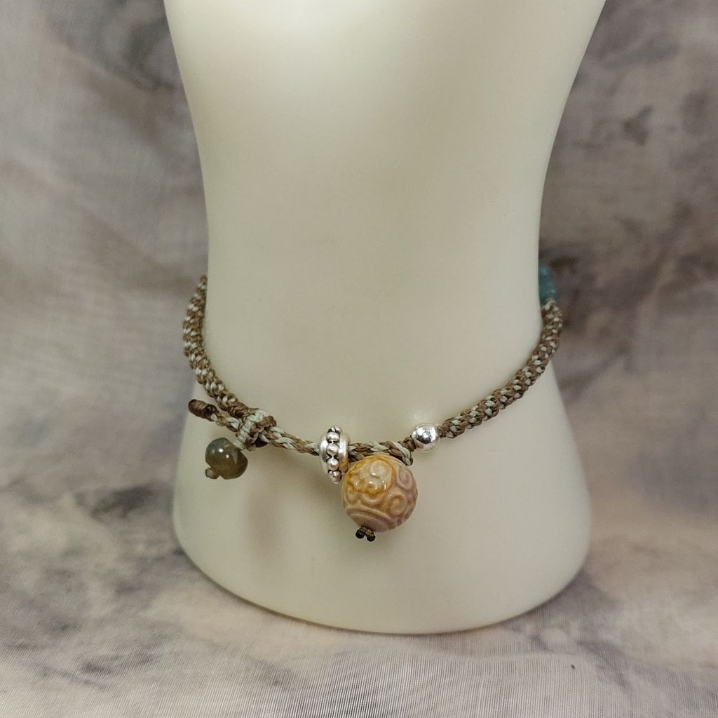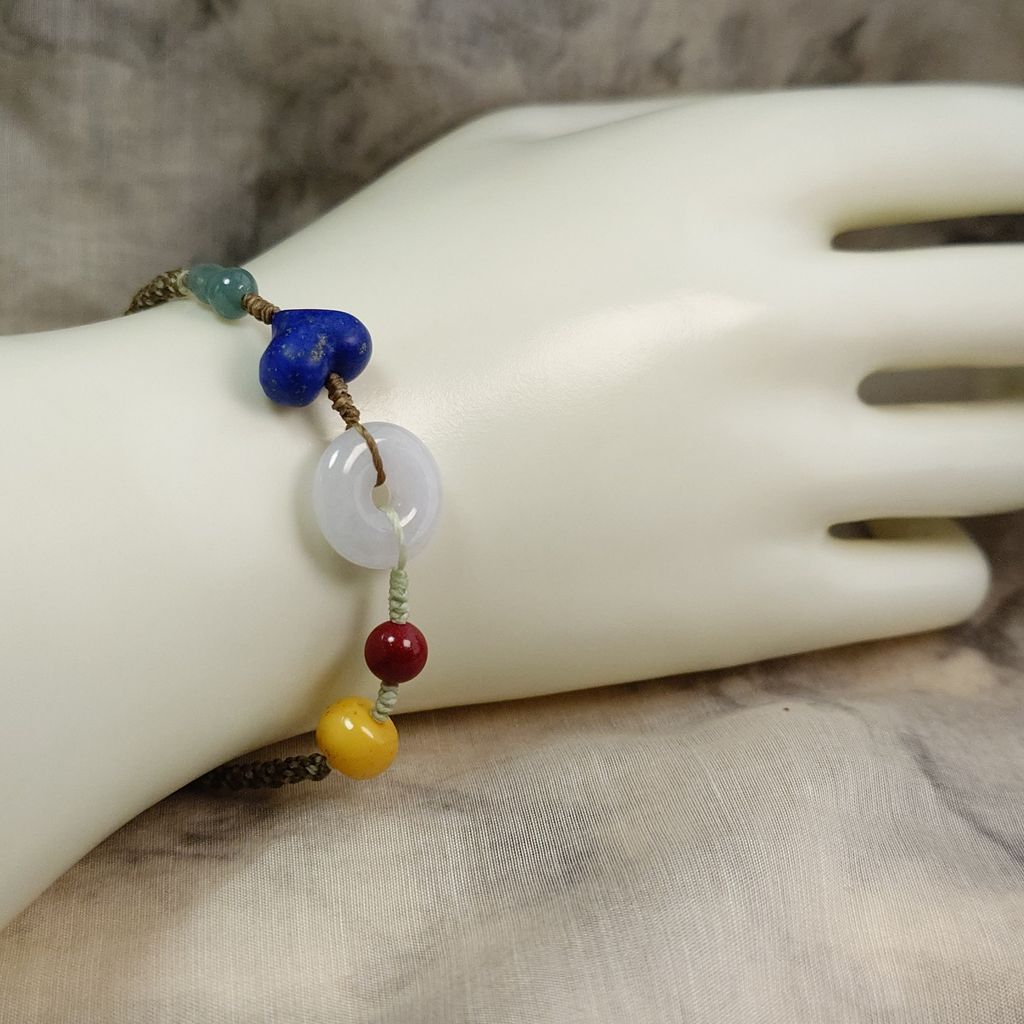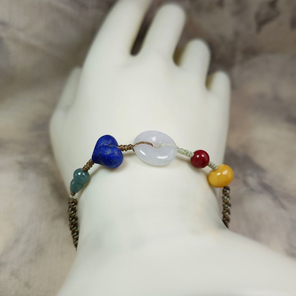 手鍊 五色寶石 綠玉葫蘆 青金石 白玉平安扣 朱砂 蜜蠟 蠟線 銀飾