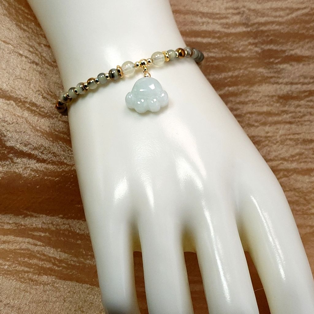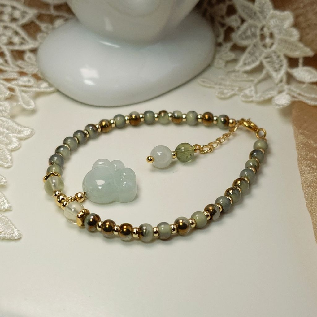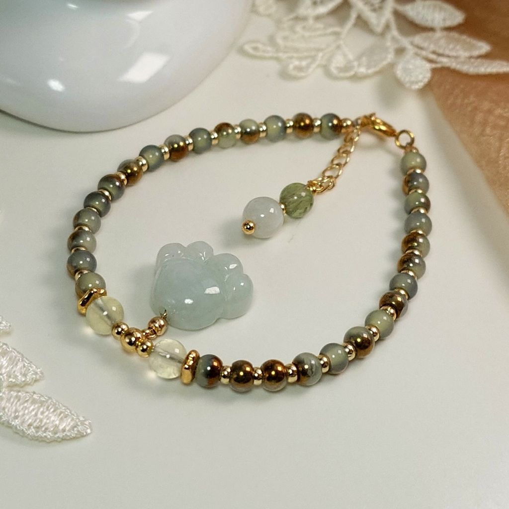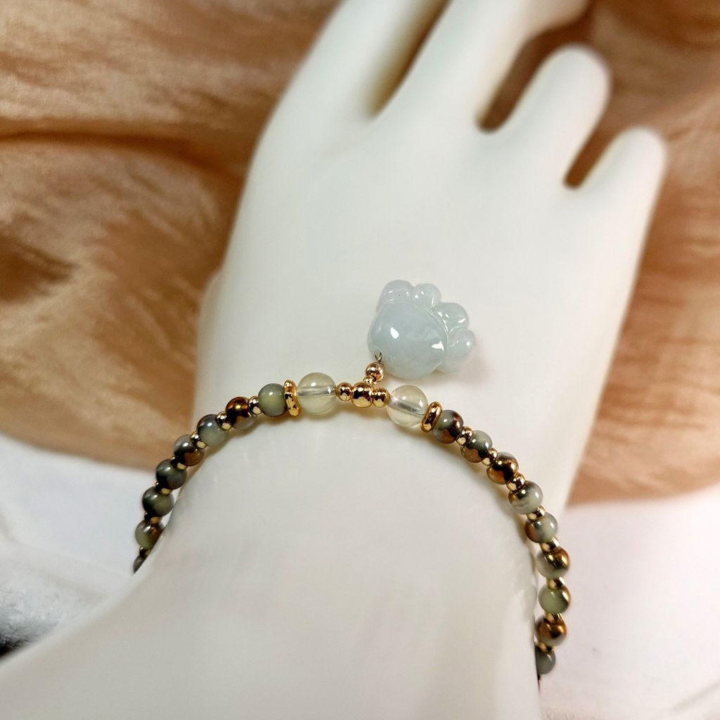 手鍊 天然翡翠 貓掌 玉 葡萄石 進口 琉璃珠 包金