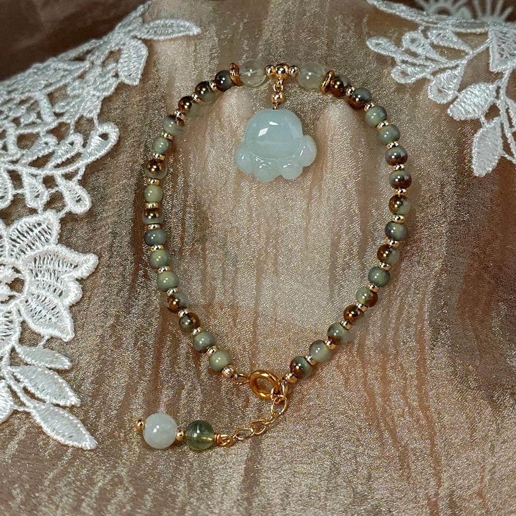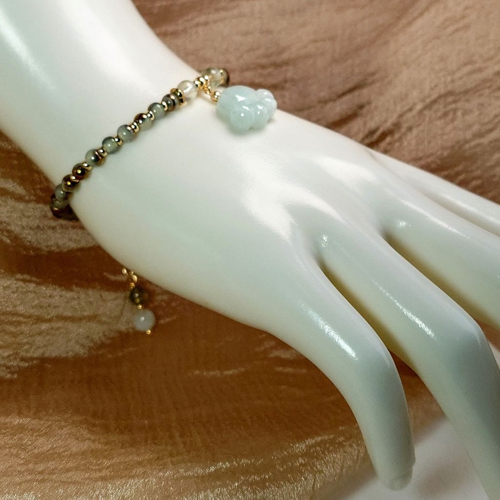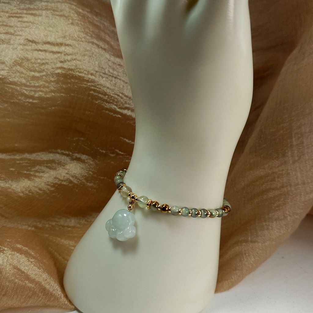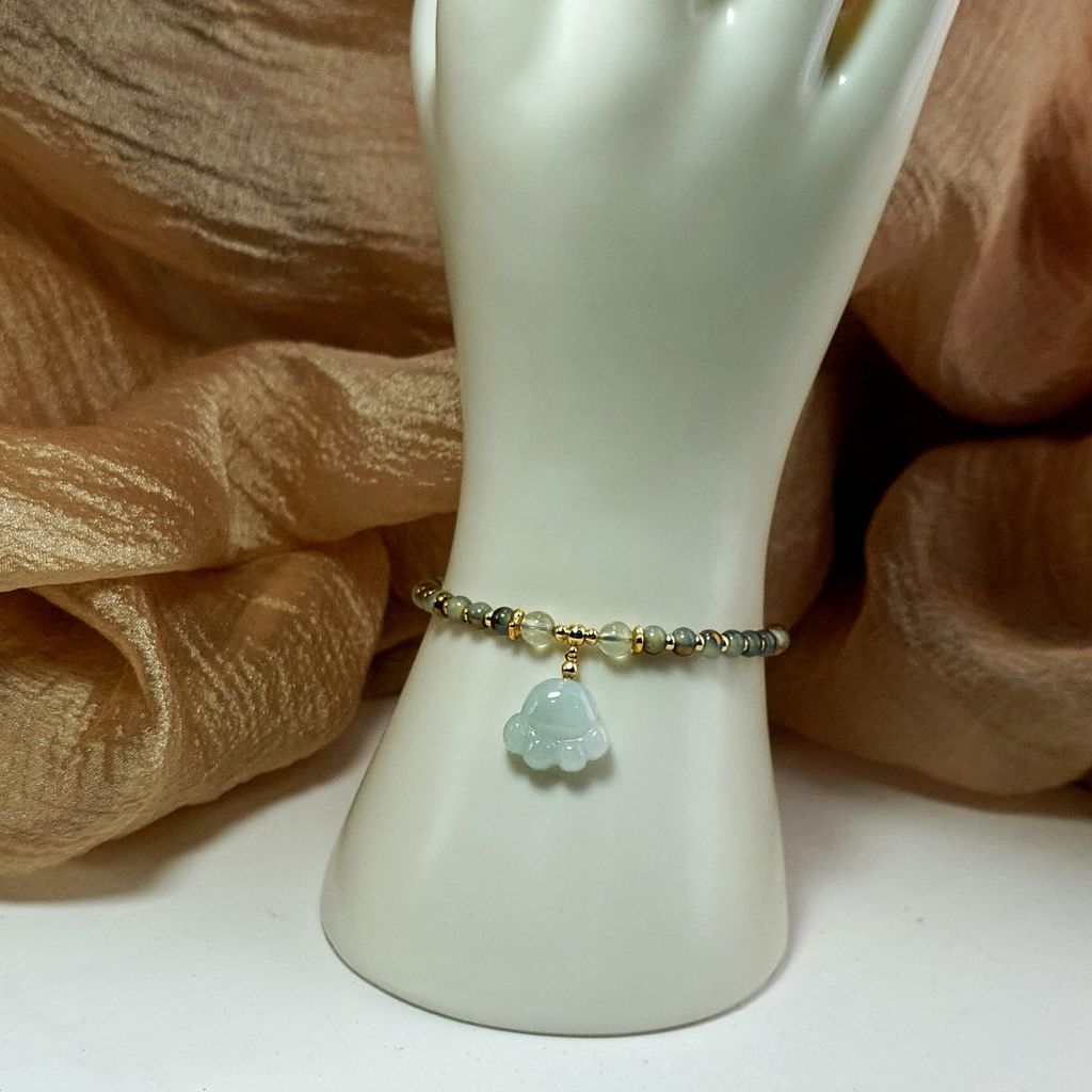 手鍊 天然翡翠 貓掌 玉 葡萄石 進口 琉璃珠 包金