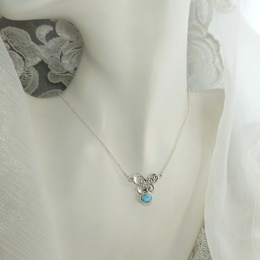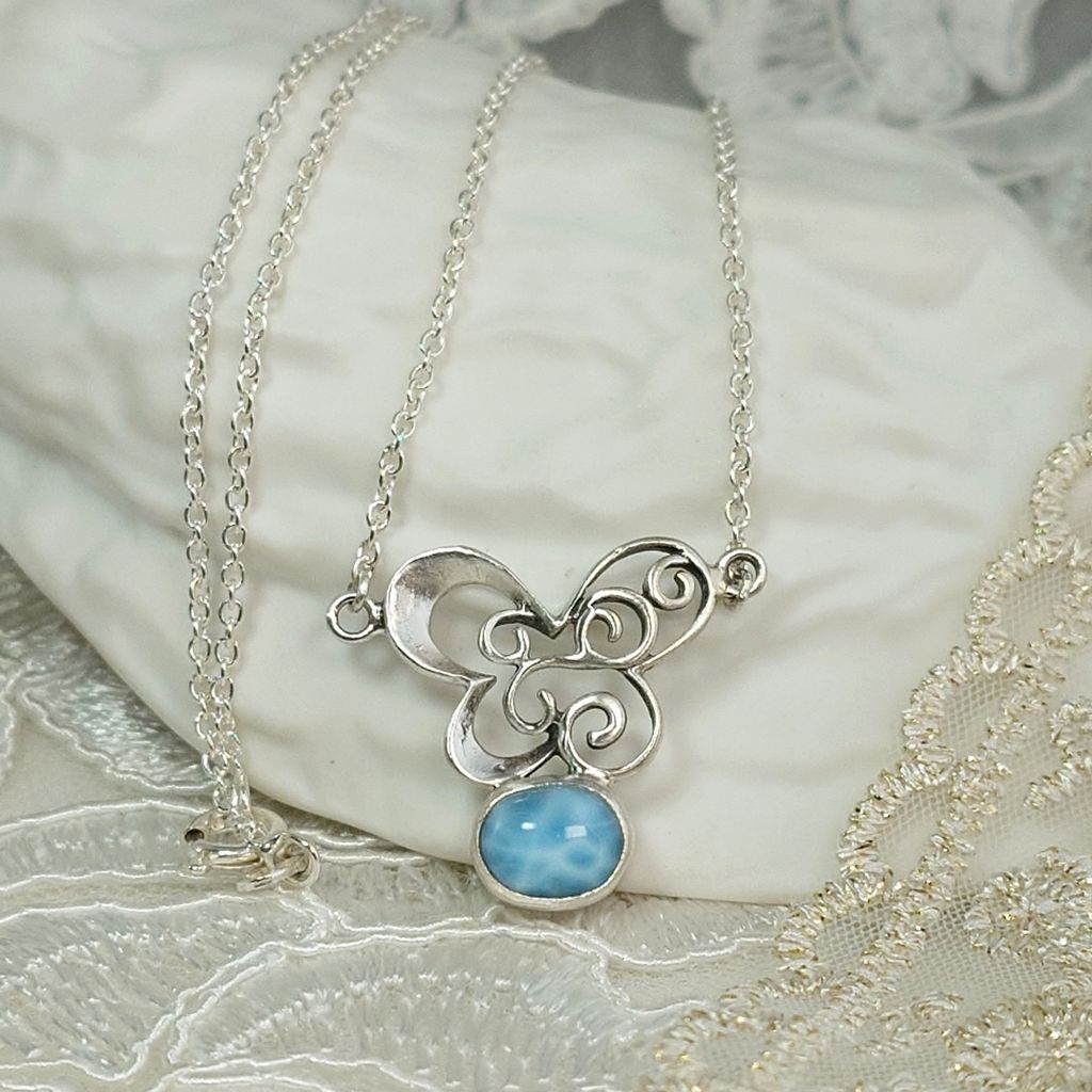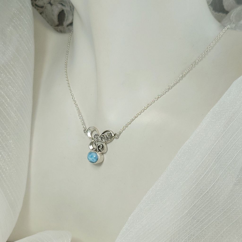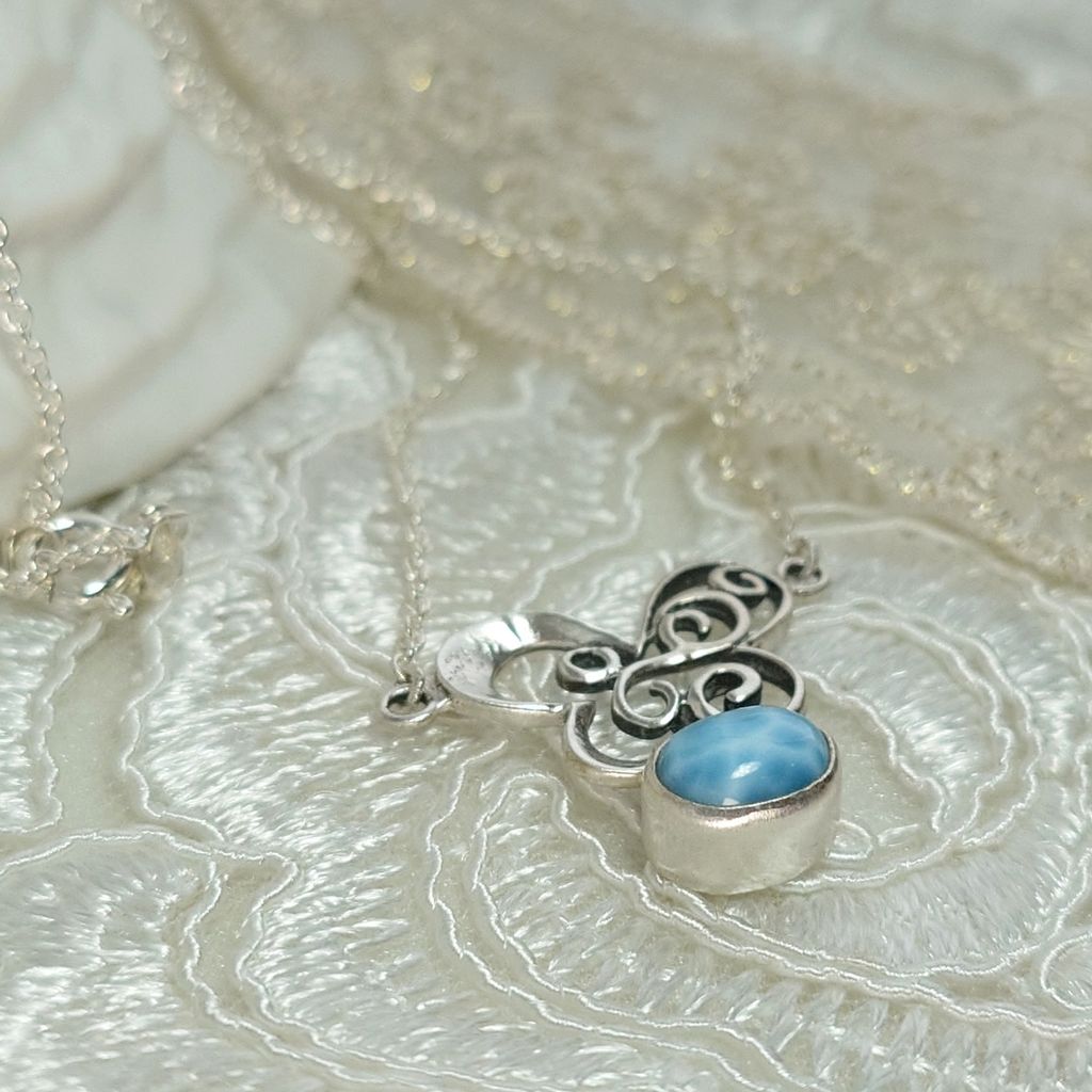 天然拉利瑪 鏤空蝴蝶 手工銀飾墜鍊