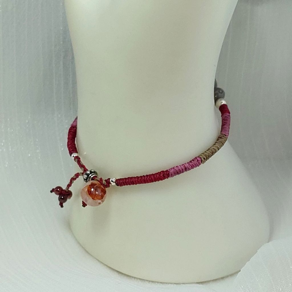 手鍊 阿拉善瑪瑙 烏龜 紅膠花水晶 紅石榴石 925銀飾 蠟線 手繩