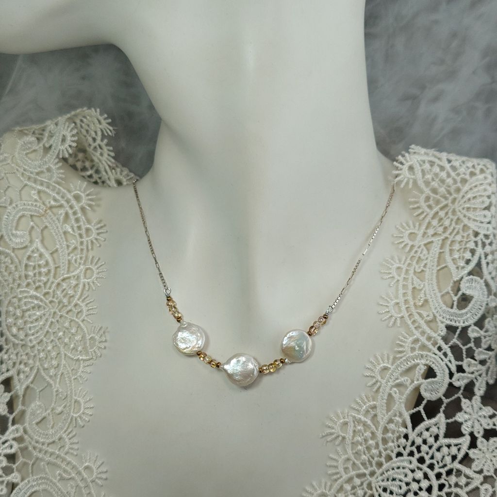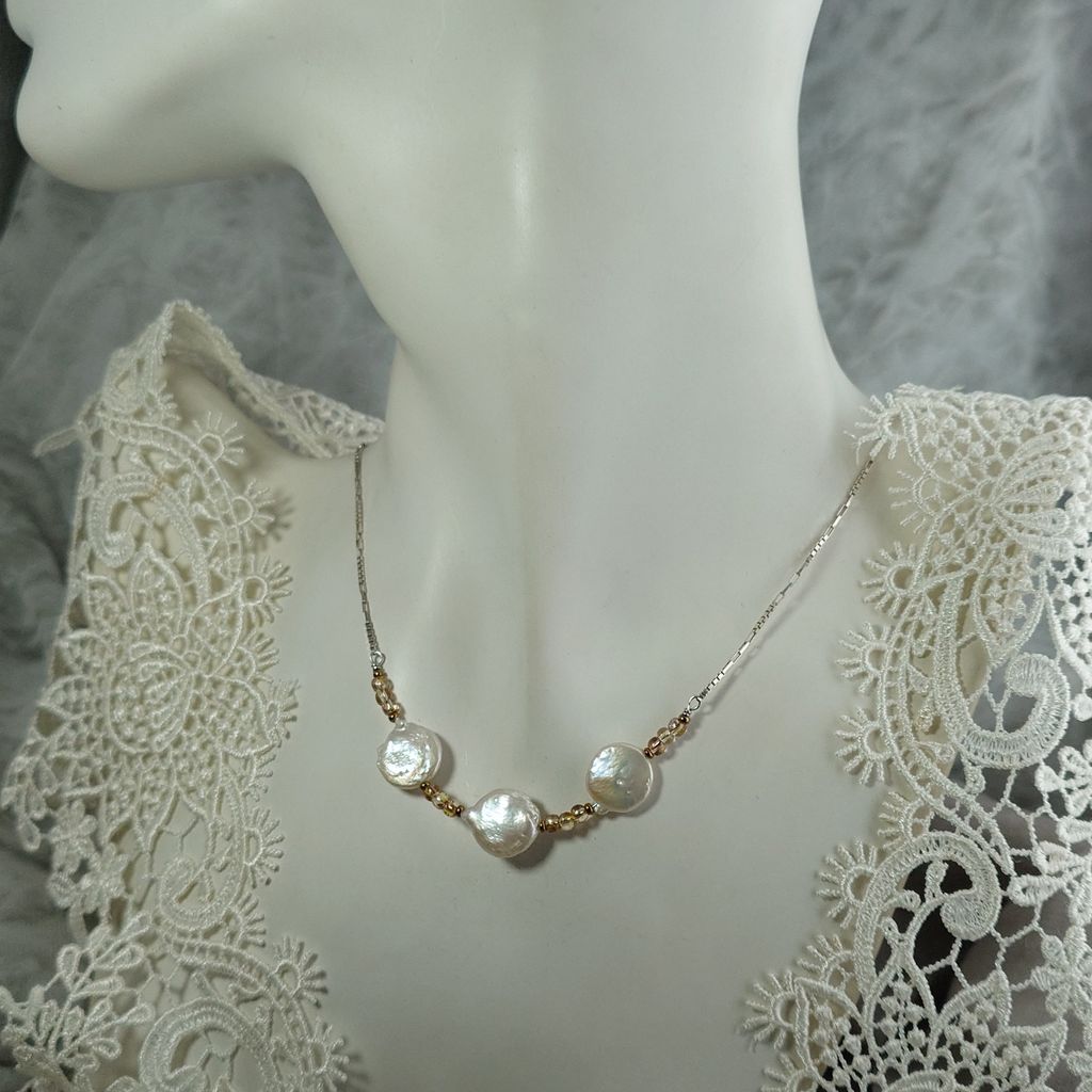 寶石(1): 天然圓扁狀 淡水珍珠, 3顆, 單顆直徑約12mmx厚3~4mm.