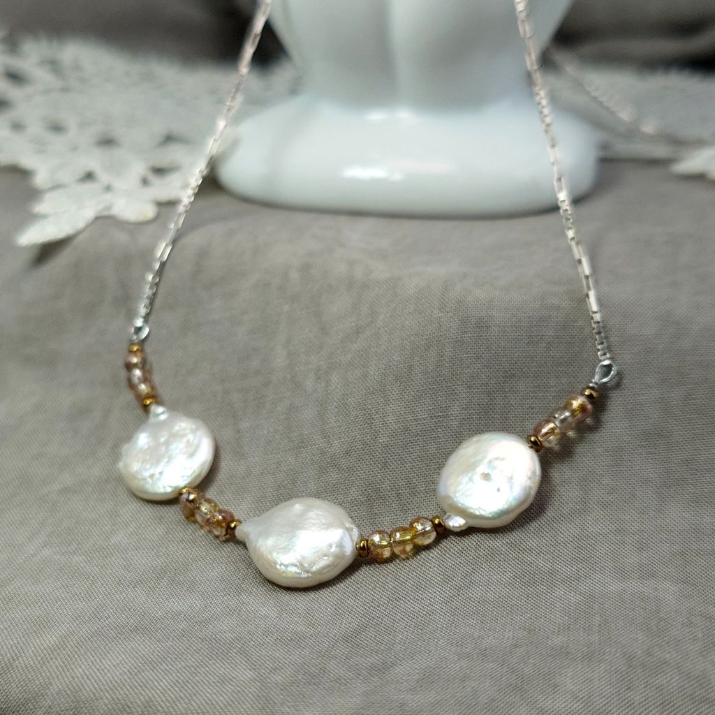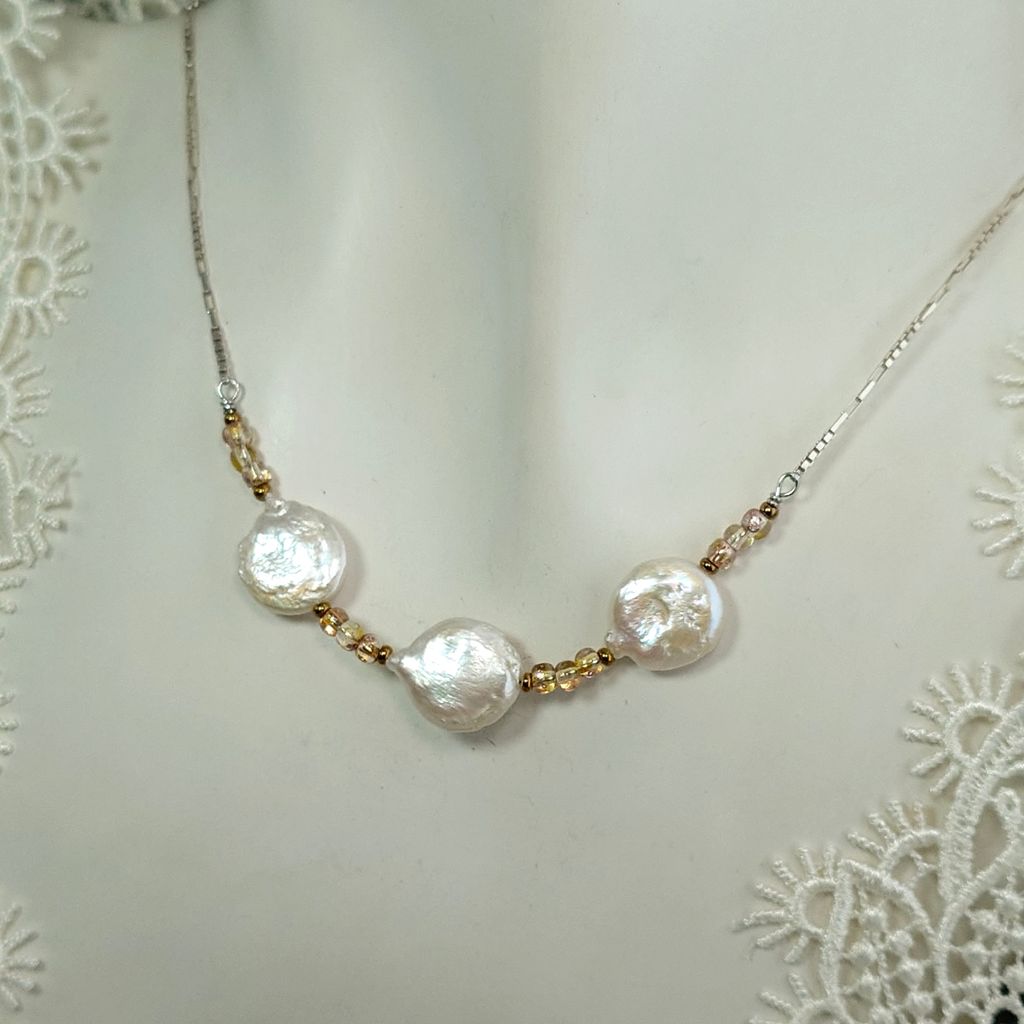 項鍊 天然 淡水珍珠 進口捷克琉璃珠 925銀飾 銀鍊 (雙面皆可戴)