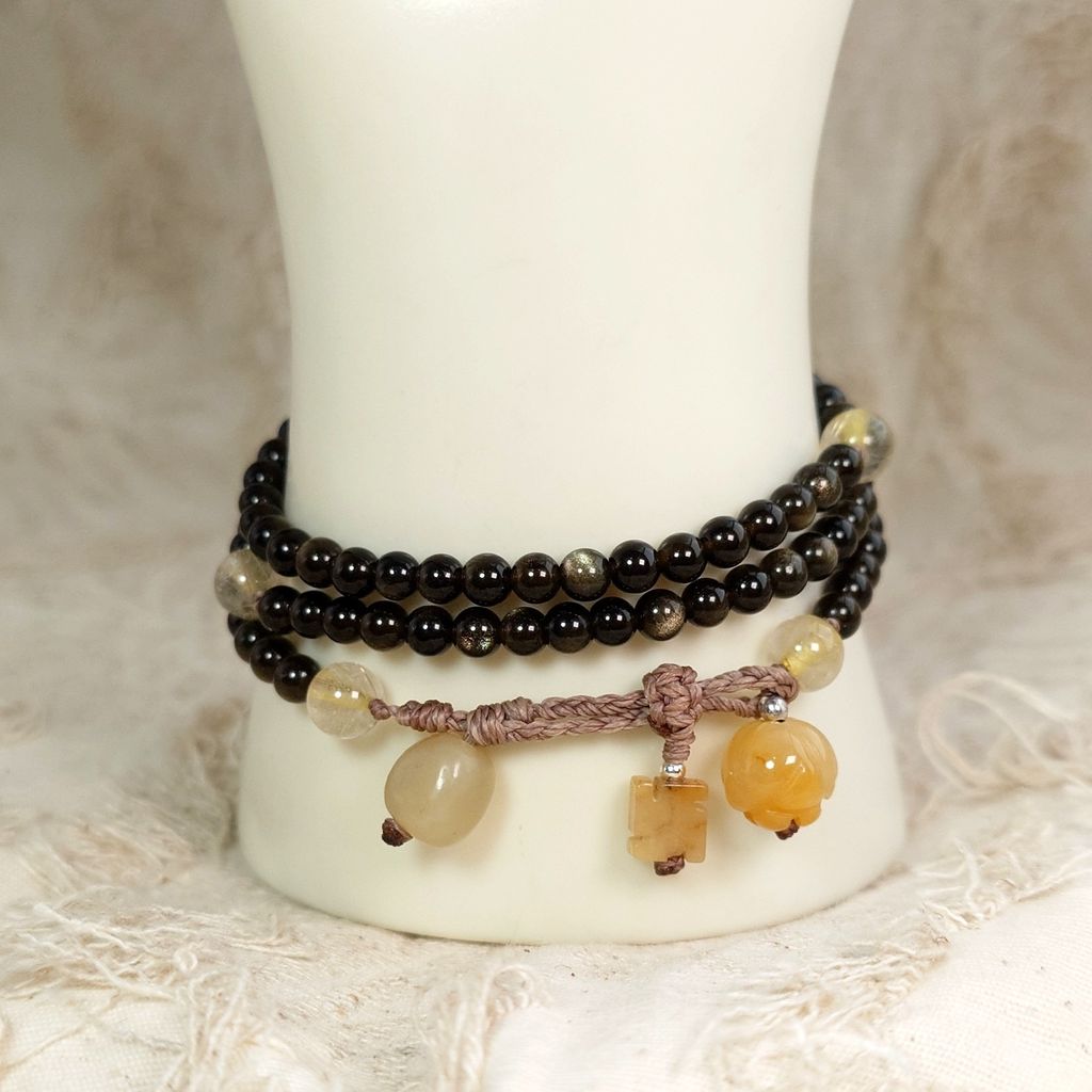 108念珠 金沙點點 金曜石 黃鈦晶 可調節手鍊