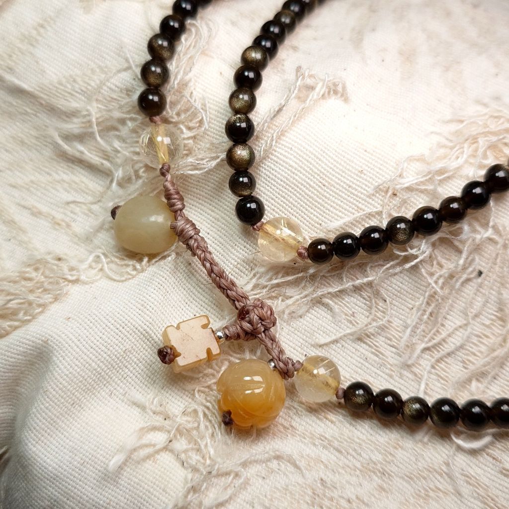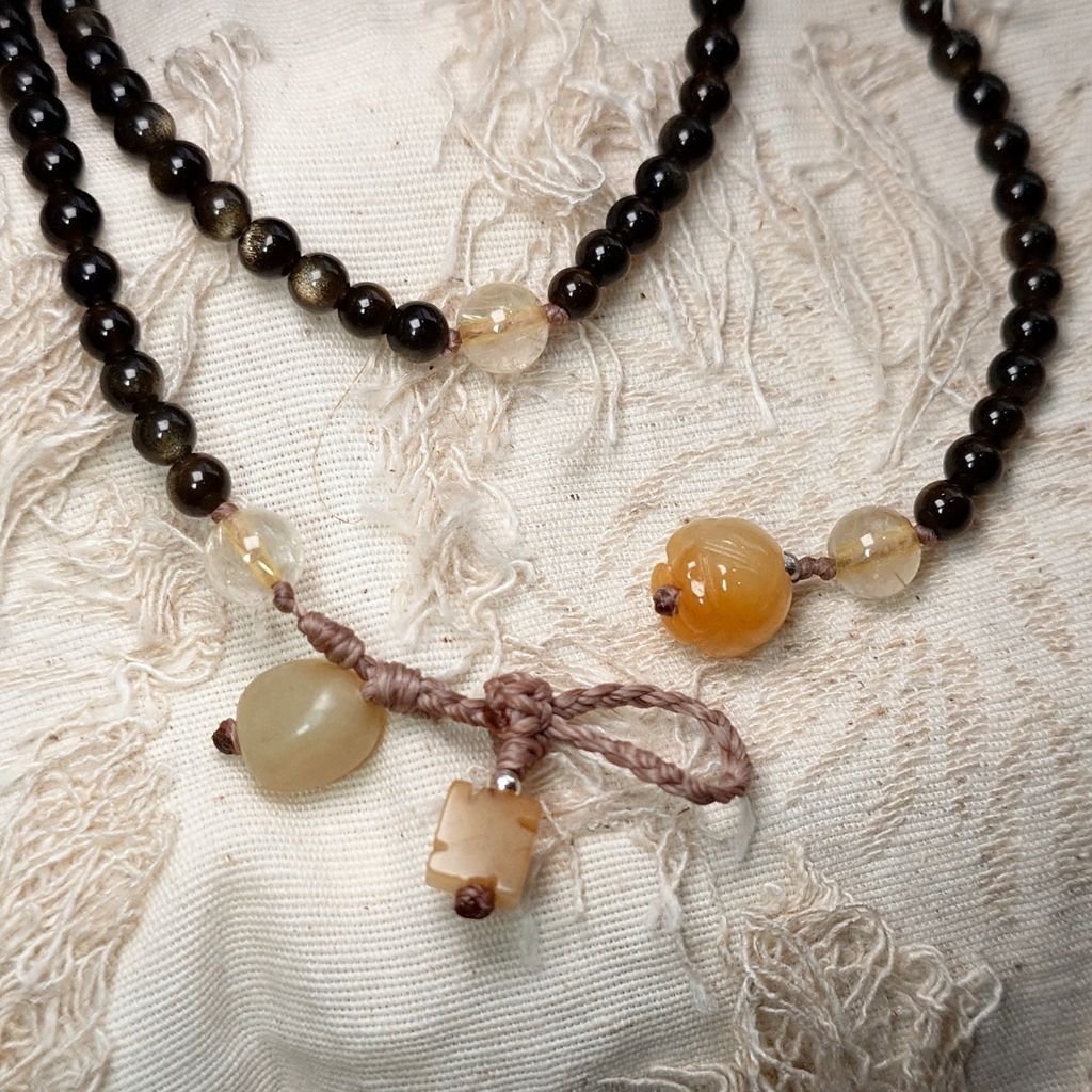 108念珠 手鍊 金沙點點 金曜石 黃鈦晶 和田玉 卍字黃玉髓 蓮花黃玉髓