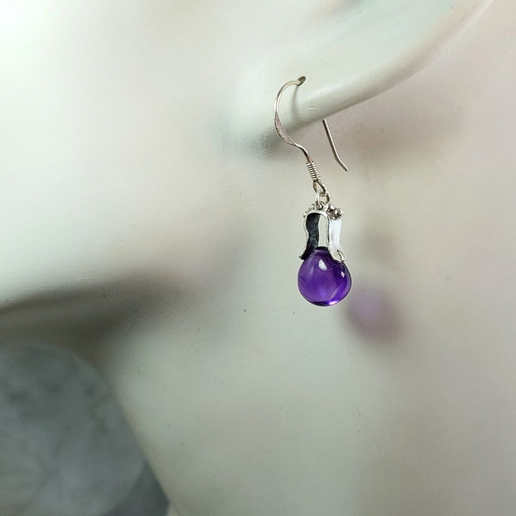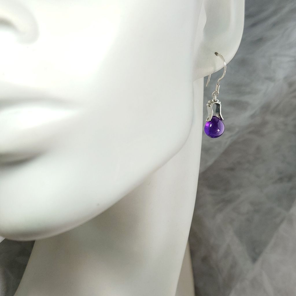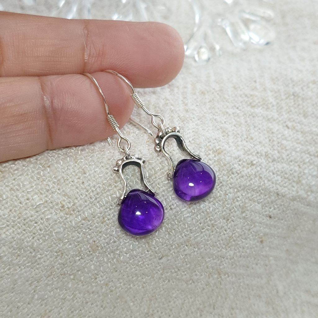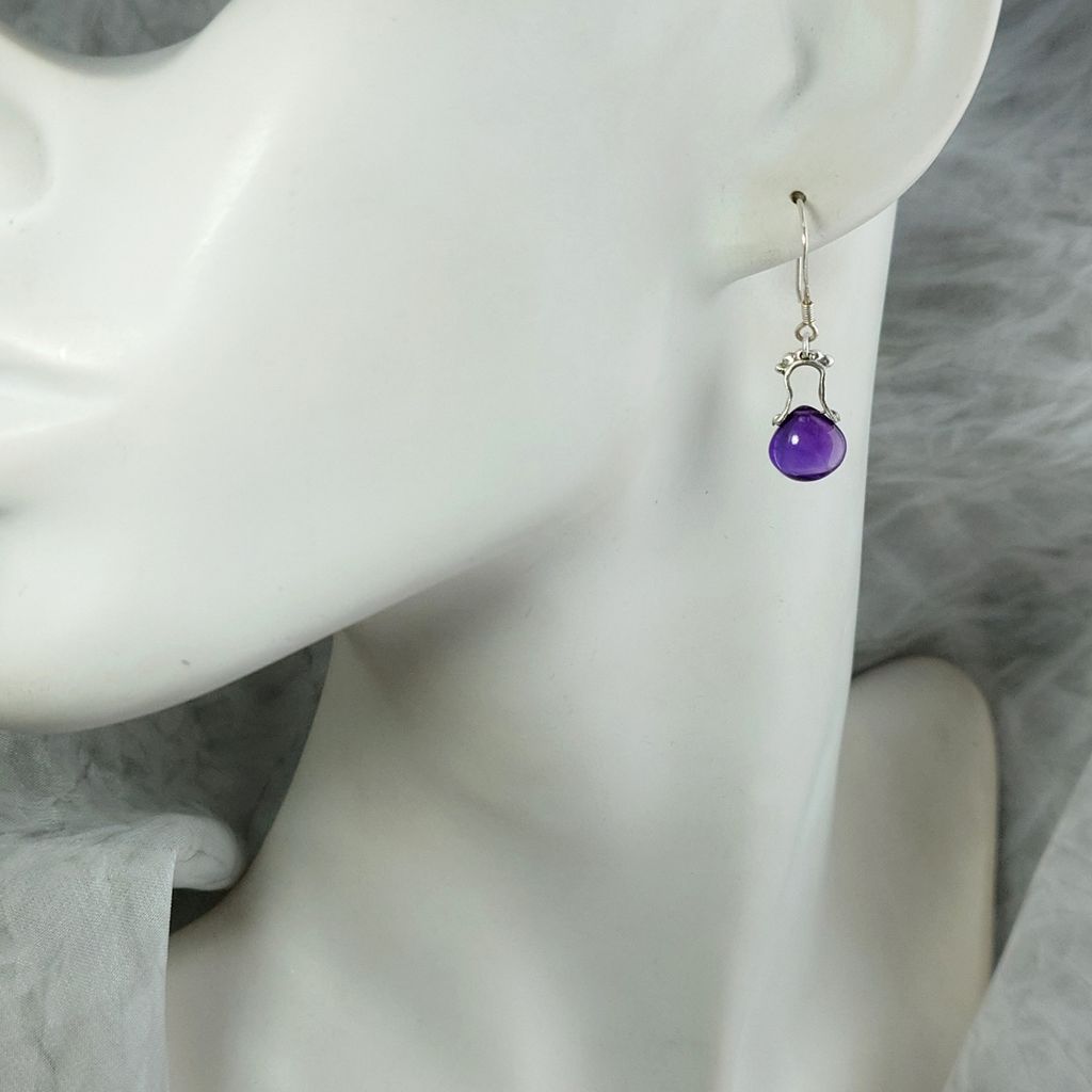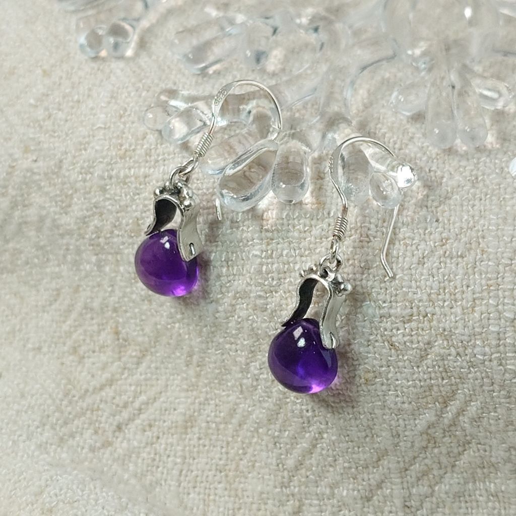 天然 色澤濃郁 水滴造型 好品質 紫水晶 手工銀飾耳環