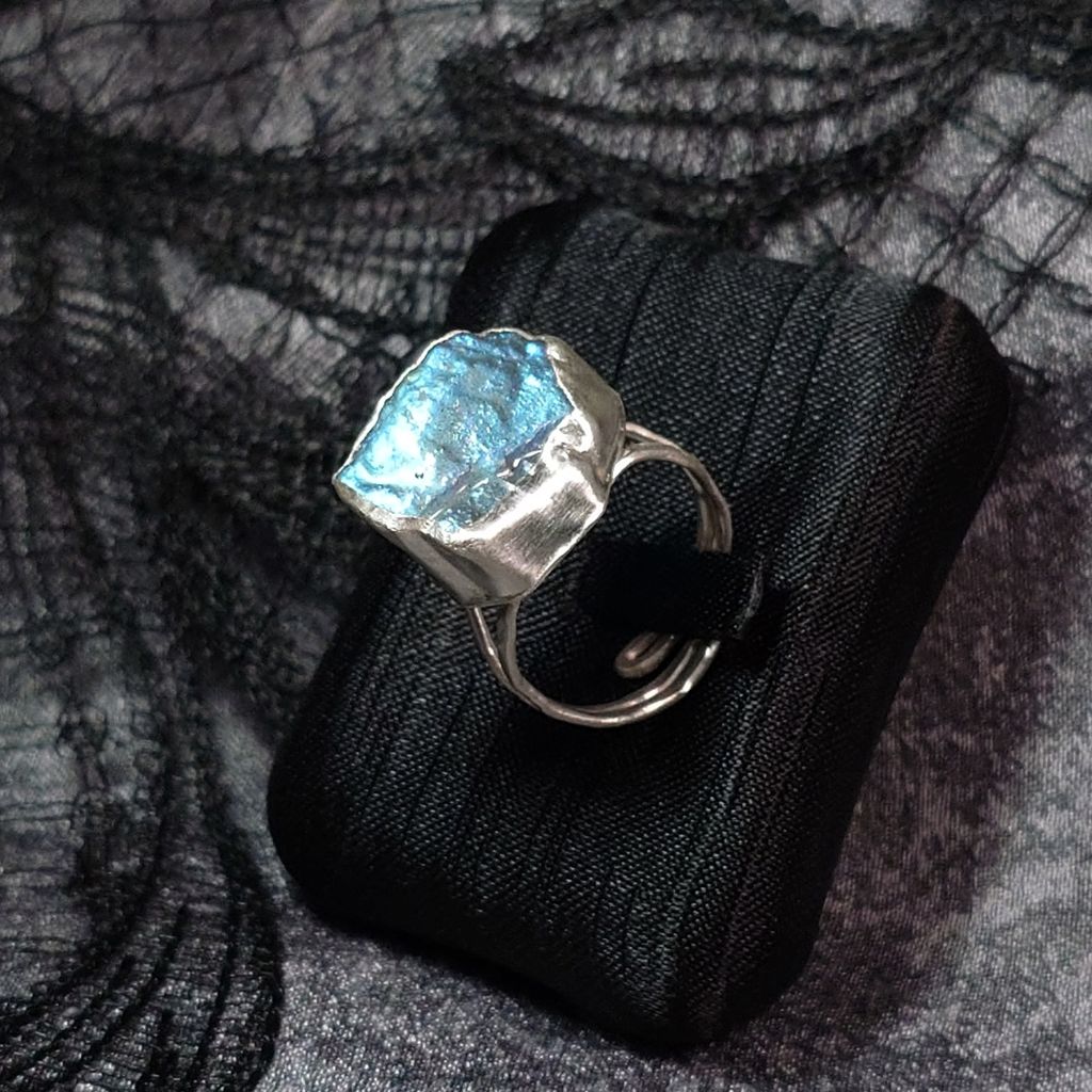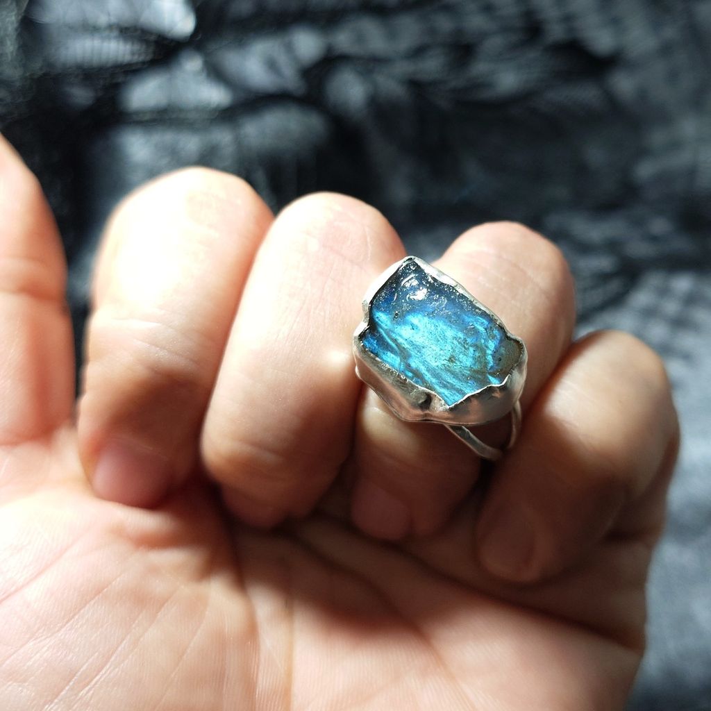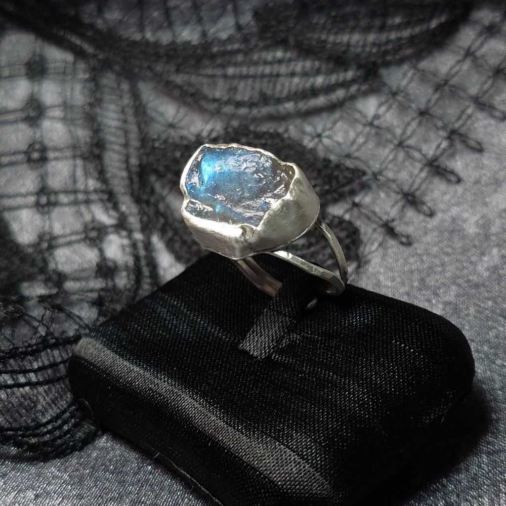 戒指 天然 藍光 拉長石 原礦 925銀 手工 銀戒 活動戒圍