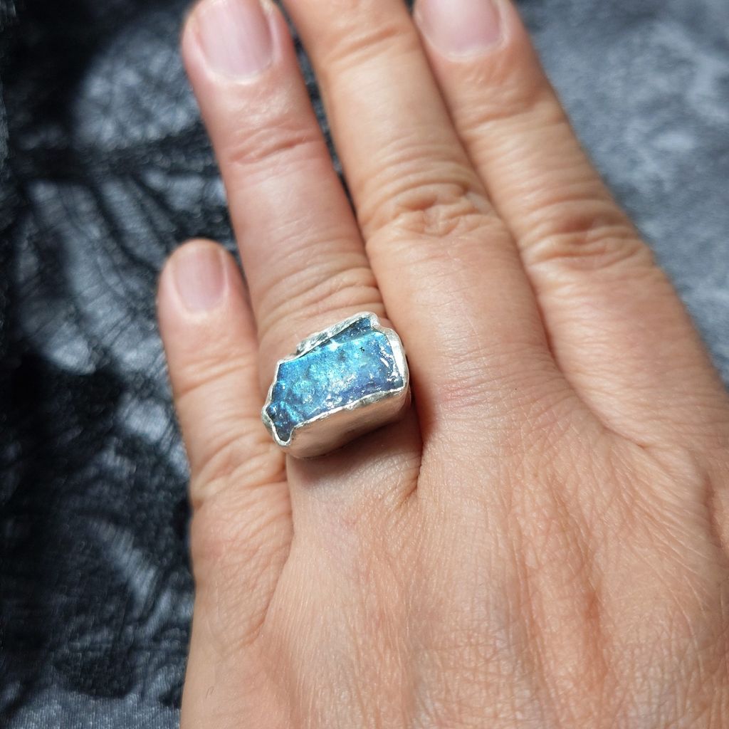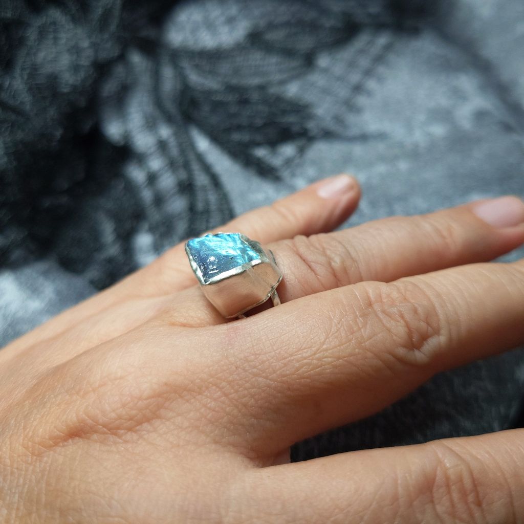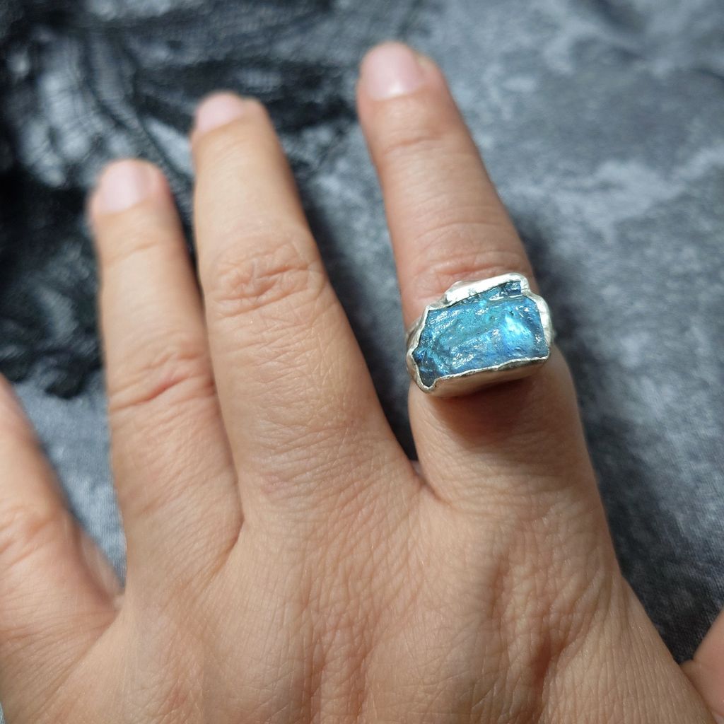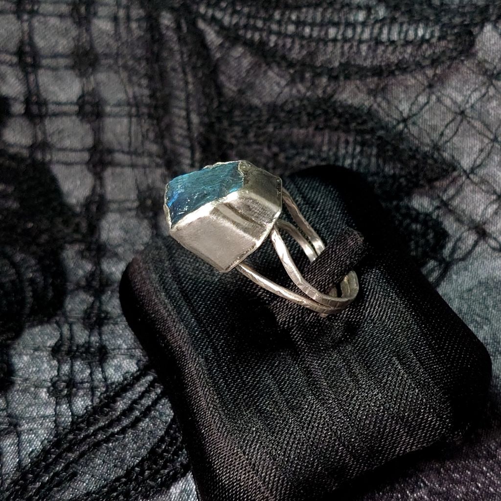戒指 天然 藍光 拉長石 原礦 925銀 手工 銀戒 活動戒圍